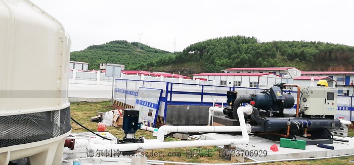 新柳南高速公路6標段配套我司生產的混凝土專用冷水機安裝中